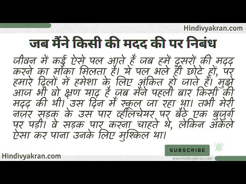 HindiVyakran: जब मैंने किसी की मदद की पर निबंध - Jab Maine Kisi ki Madad Ki Par Nibandh